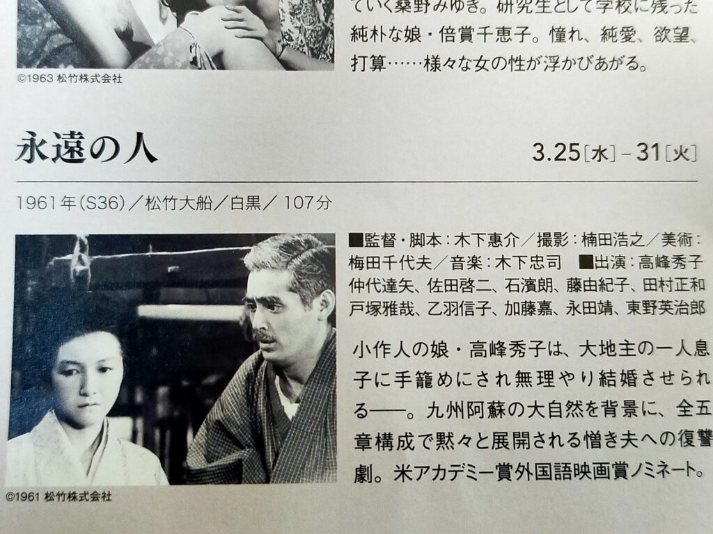 「永遠の人」 1961年 木下恵介監督 松竹大船 ラピュタ阿佐ヶ谷・35ミリ上映