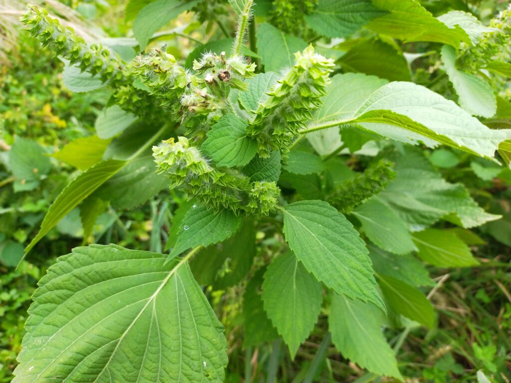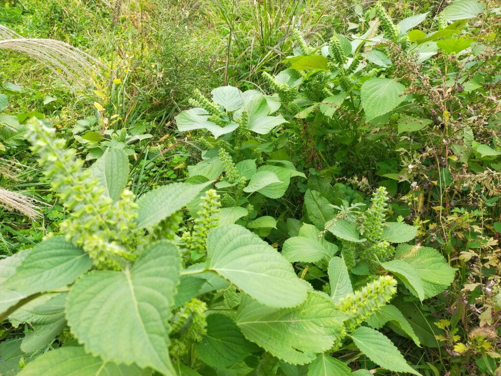 また、毎年エゴマを撒く場所には自然発芽したのか、きれいな葉っぱと出始めの穂が姿を見せていました。