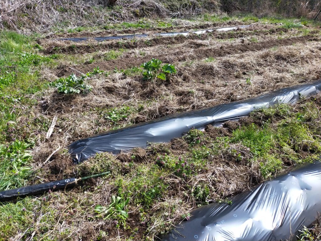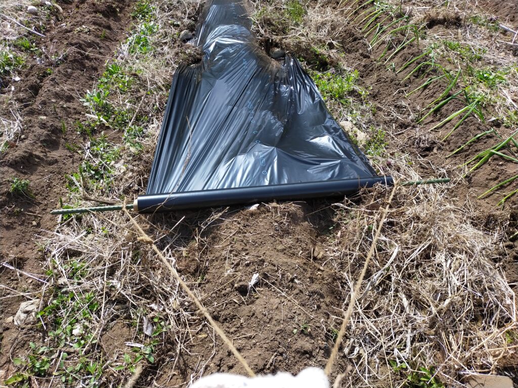また、16列の畝のうち、4列をマルチなしの露地栽培とし、菊芋、男爵、長ネギなどはマルチなしで栽培しようと思います。