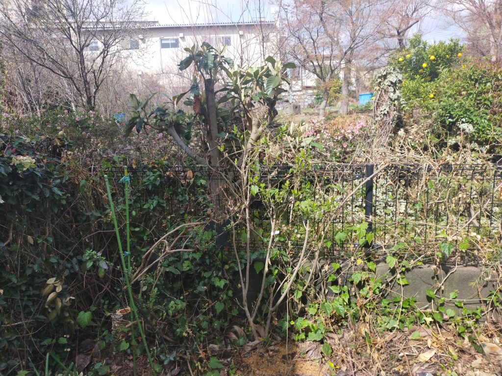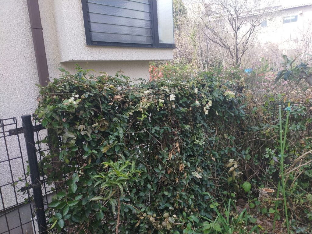 先ずはフェンスに這わせているツタを根元から切ってゆきます。