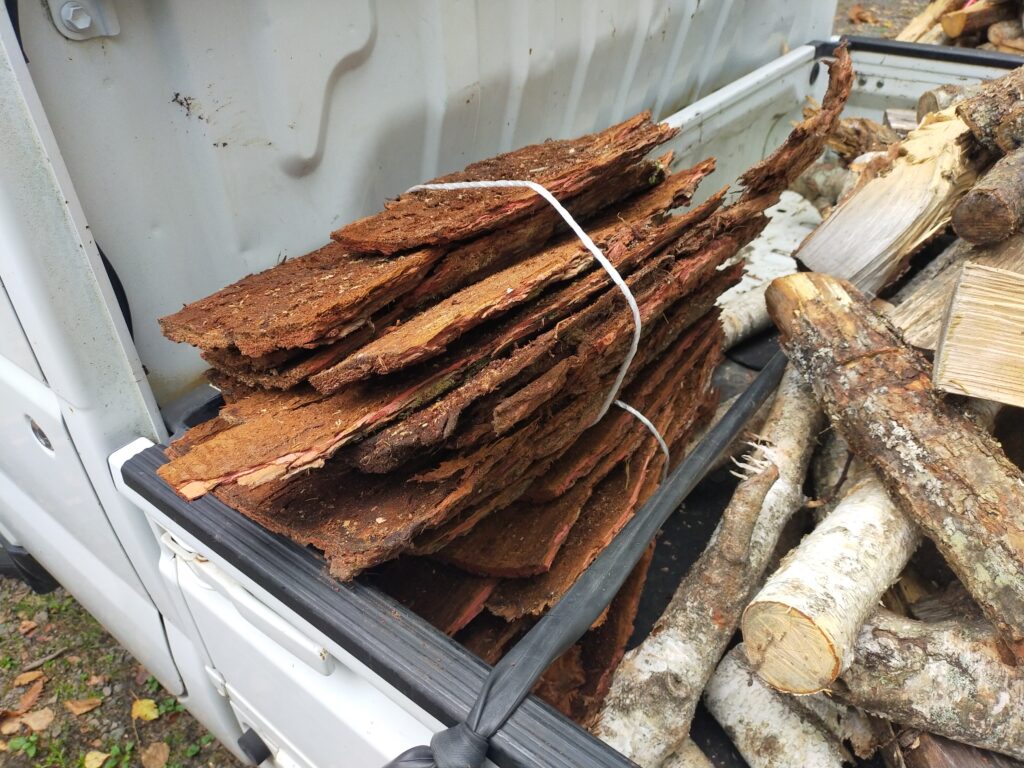 風通しの良い場所だと、夏を越しての1年で、シラカバ、カラマツだと燃料に使えます。