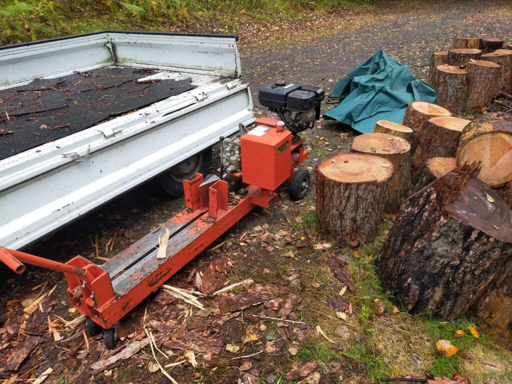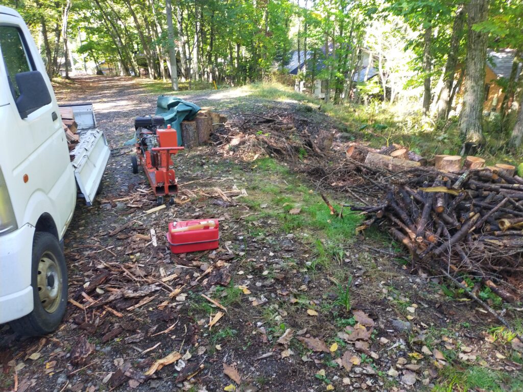 道路際に積んでおいた玉の脇に薪割り機を移動します。