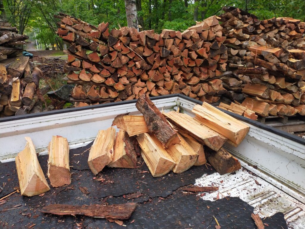 新しい薪が気持ちよく積み込まれてゆきます。木の香りがして蜂が寄ってきます。
