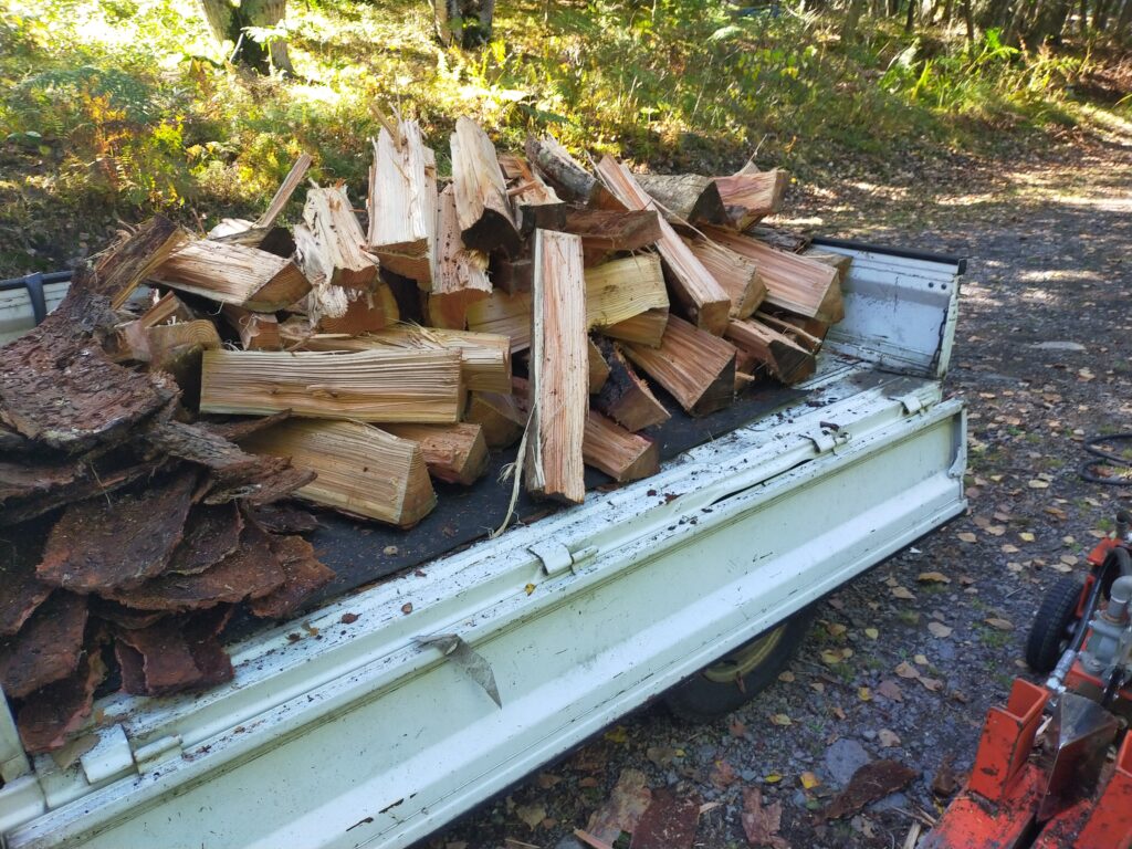 積んだ時に下の方の薪は大きく、上に積む薪は細く、軽くしたいので、それを考えて割ってゆきます。