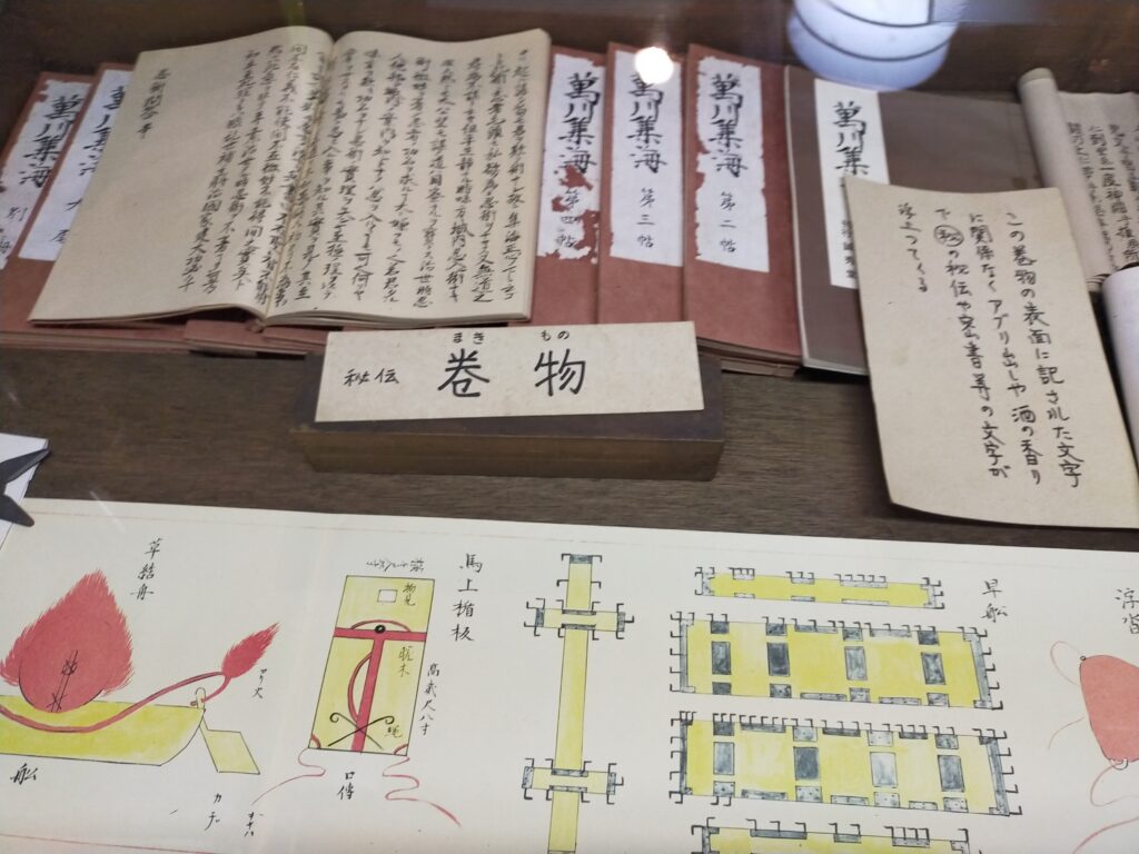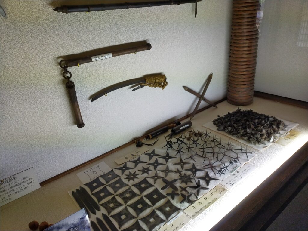 そこに展示されているのは、奥義書やら手裏剣などの実物。