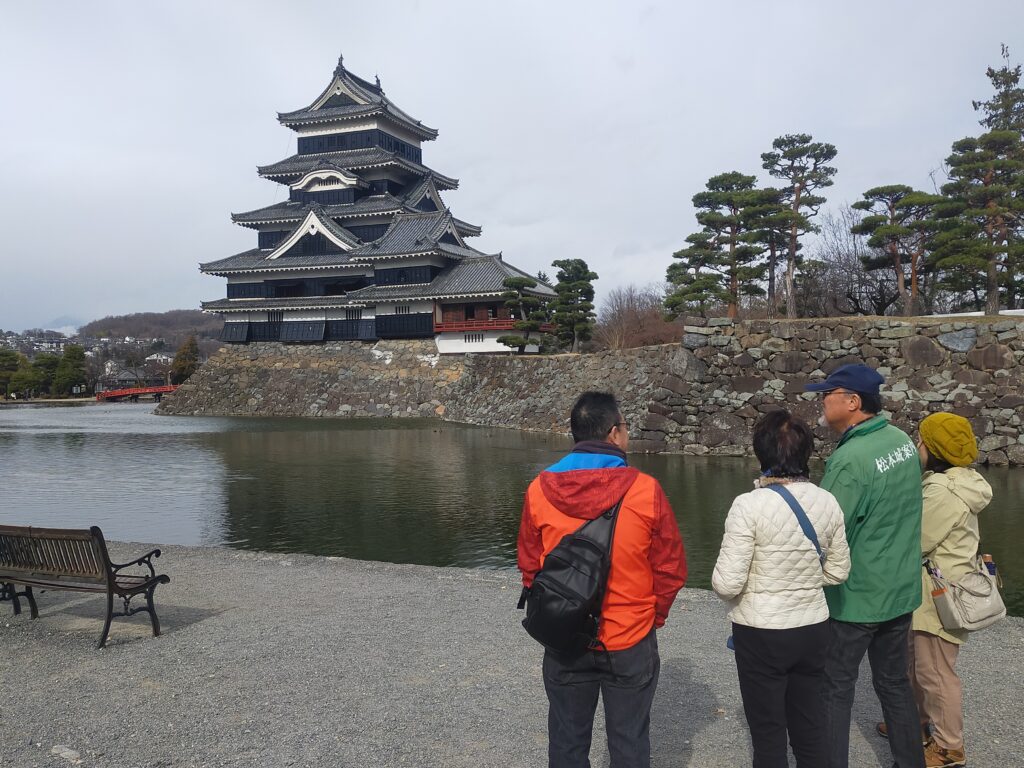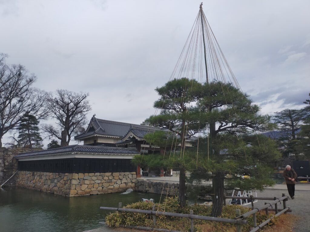 お城から北アルプスの雪景色が見えないのが残念です。
