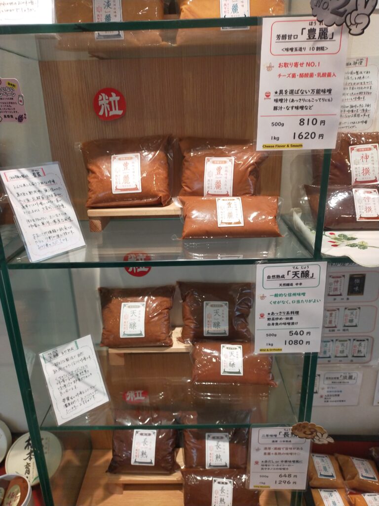 味噌のほかに醤油、漬物、菓子、乾物までそろえており、観光客向けのアンテナショップのようです。