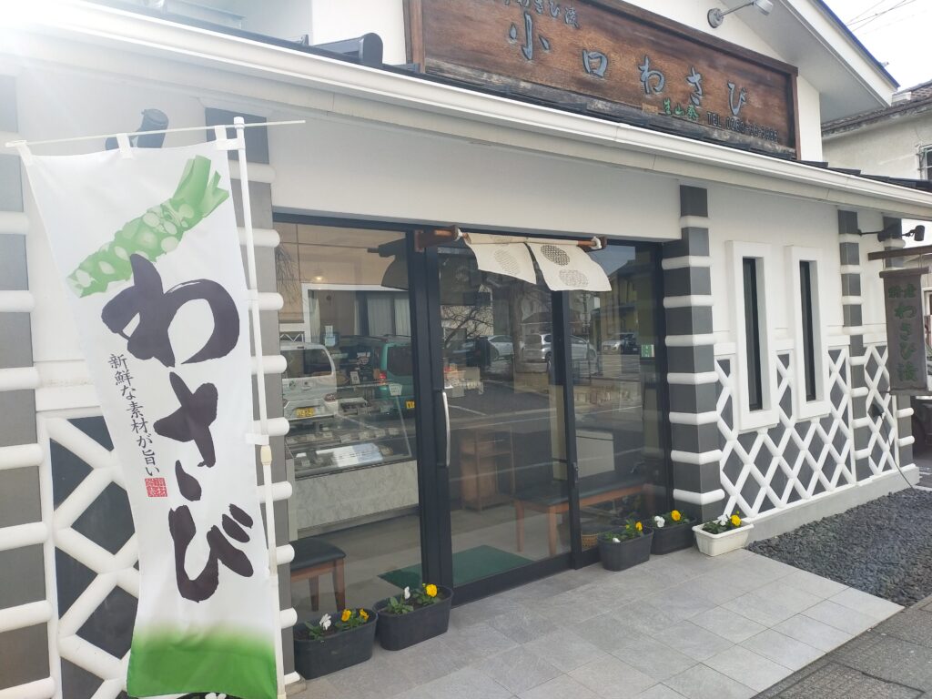 次に向かった小口ワサビ店は角を曲がったところにありました。