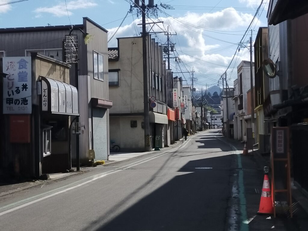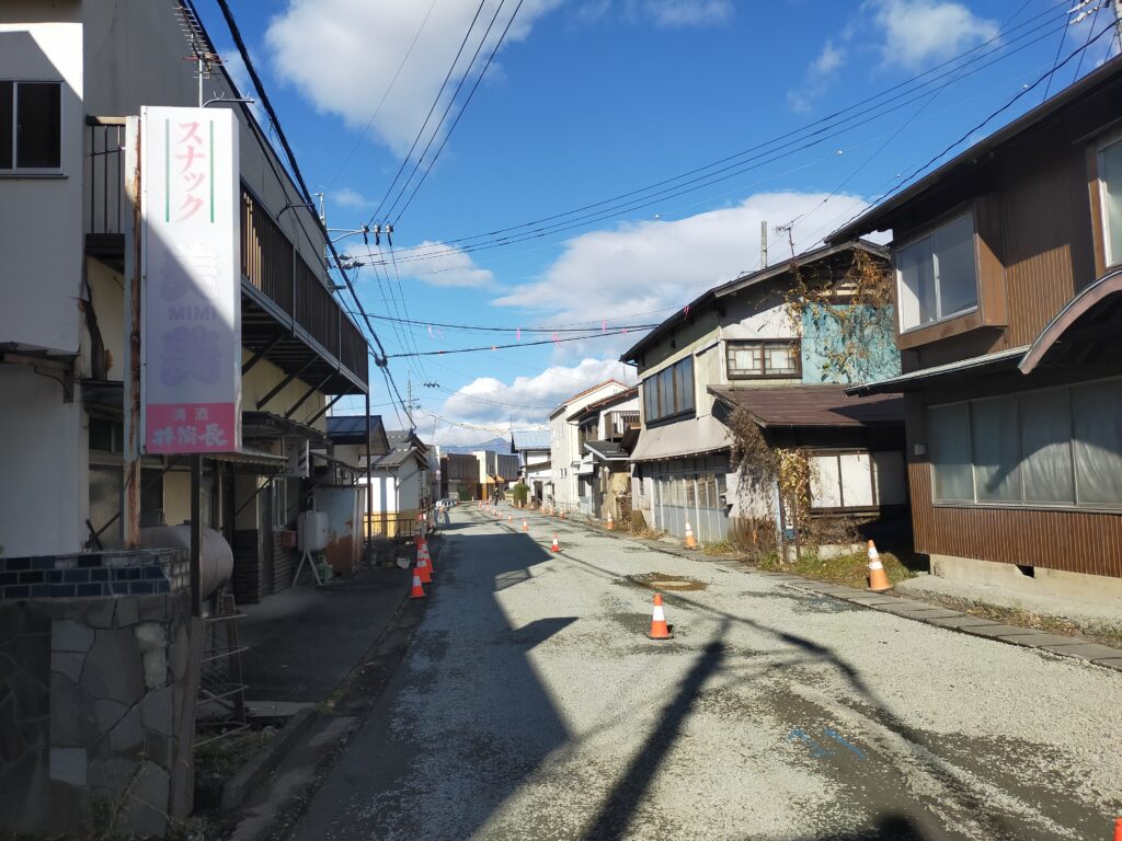 141号線から千曲川を渡るとひなびた商店街がありました。