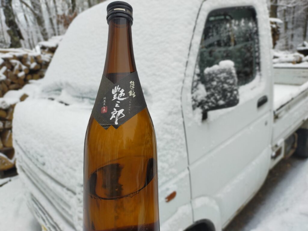 雪にまみれ凍り付いた愛車キャリーをせめて凍っていない車内のシートの泥を払い、タイヤに慰労の日本酒をかけて別れを告げる。