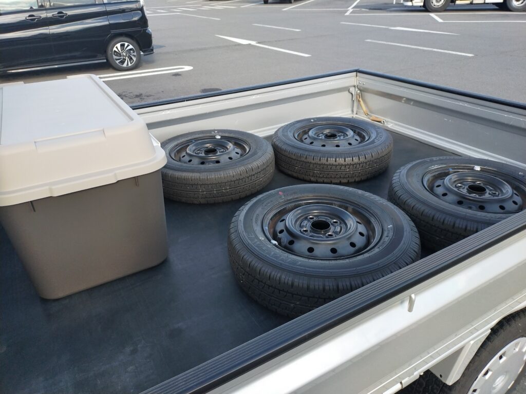 丸子自動車では、キャリーのスタッドレスタイヤを、クリッパーに履かせ、夏タイヤは荷台に乗せてくれ、残金を払って受け取り終了。