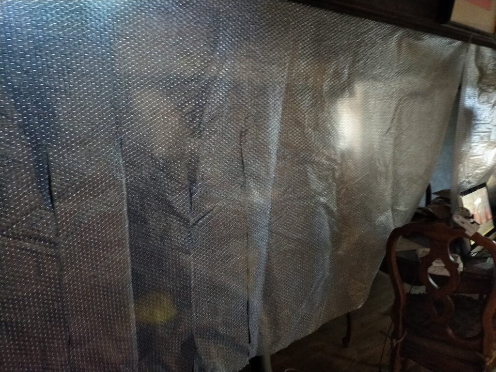 山小舎おじさんの自力で行った対策は、居間部分を仕切る(暖気を逃さない)ビニール張り、があります。
