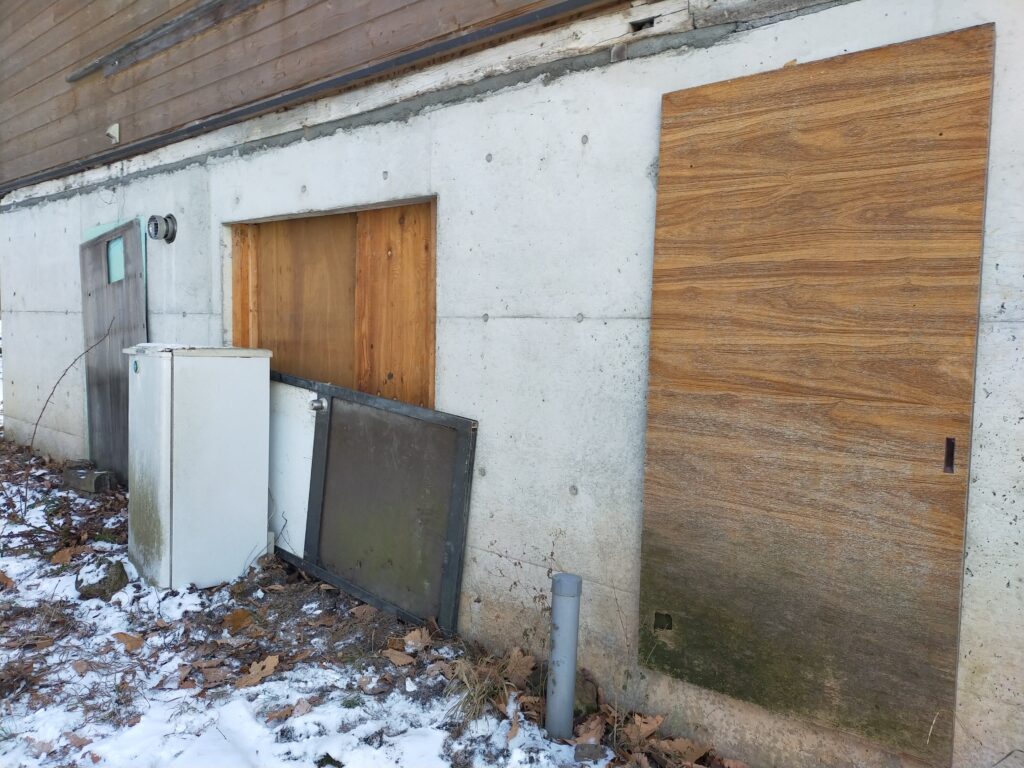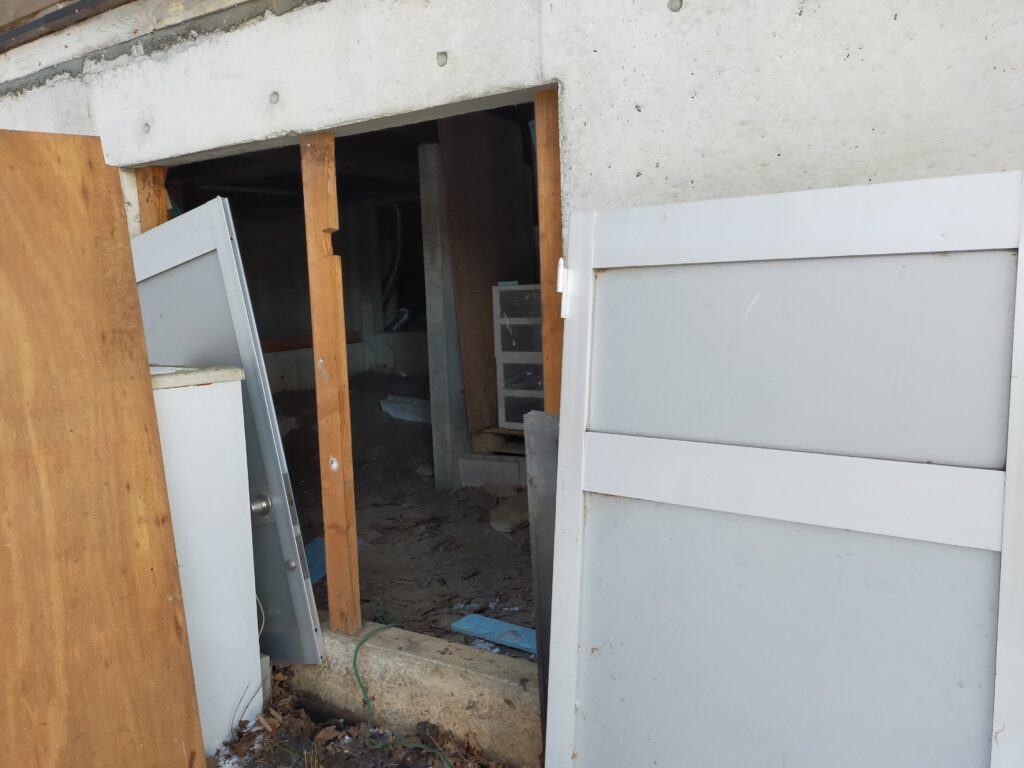 毎年冬が来る前の作業として、水道管に電熱サーモスタットのスイッチを入れに半地下に下りると、半地下の入り口が壊れて開いているのが確認できました。