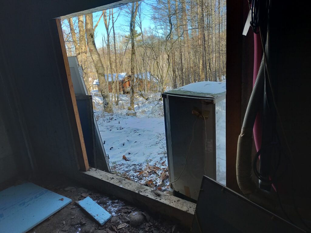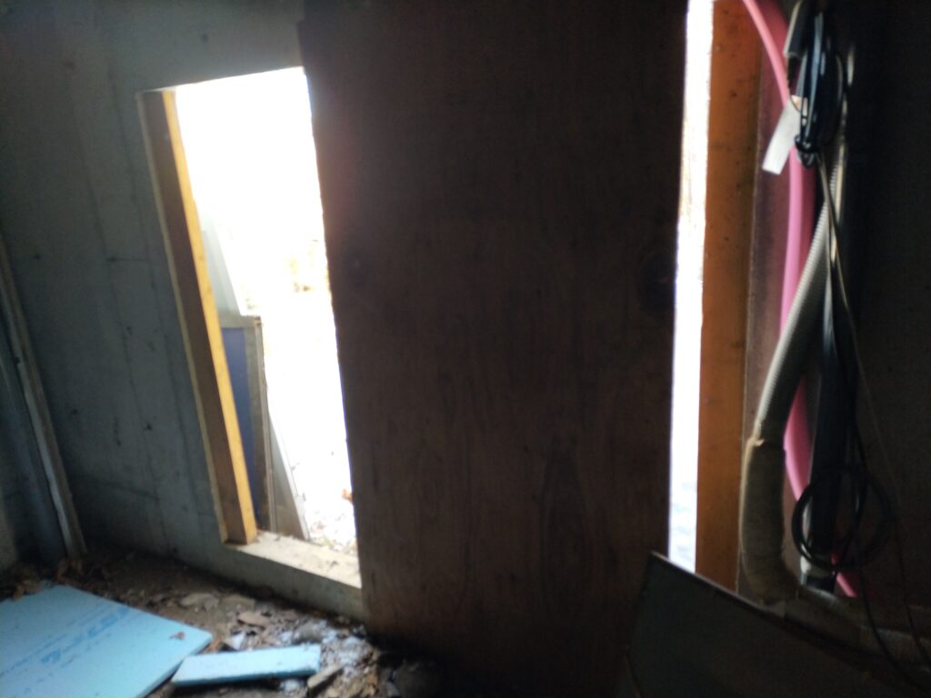 本格的な対応は来春に行うこととして、とりあえず内側からコンパネで塞ぐことにしました。