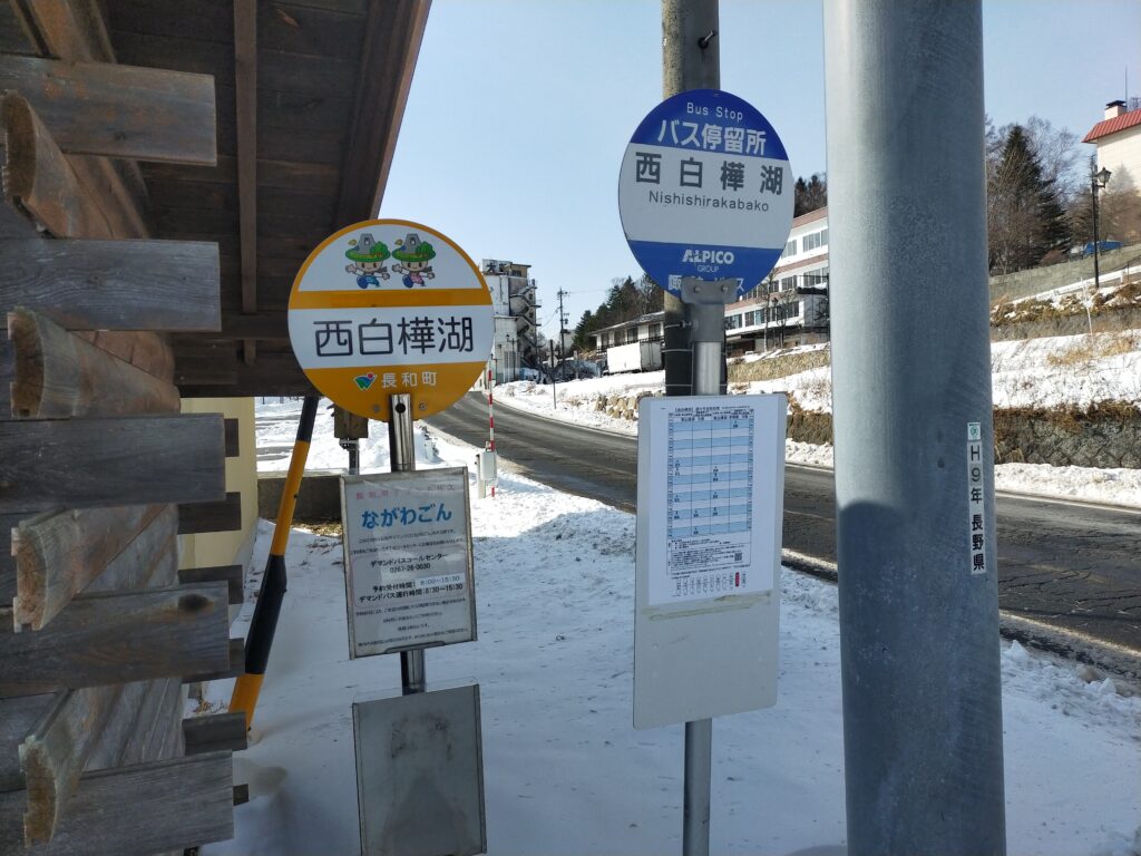 当日、朝8時20分にやってきたながわごんで西白樺湖バス停まで。