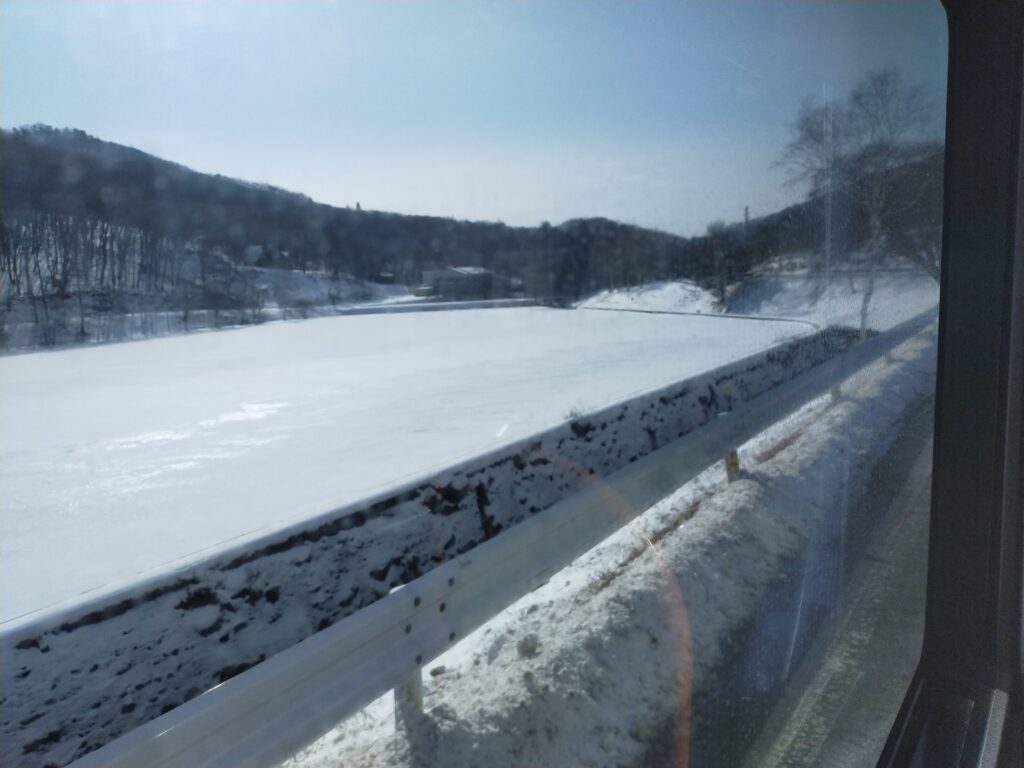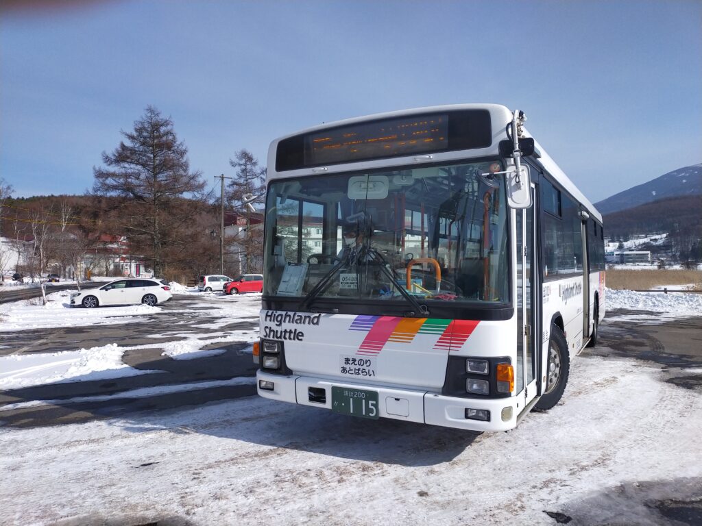 真っ白な白樺湖御周辺の雪景色の中をバスでらくちんな移動です。