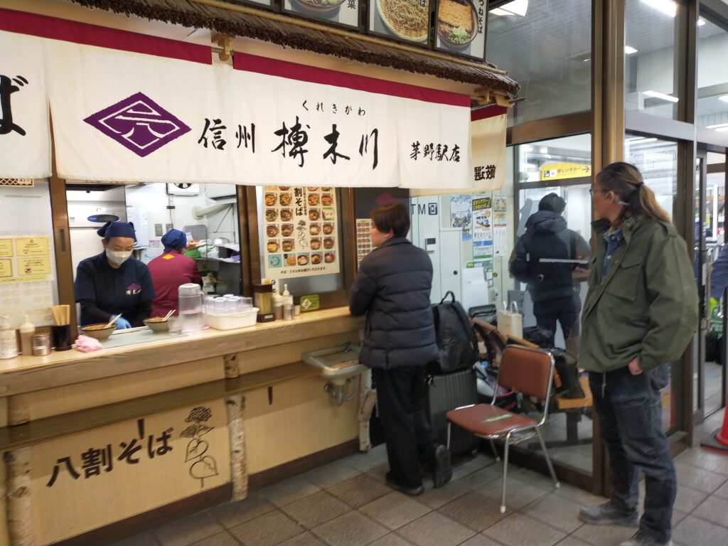 茅野駅で立食い蕎麦で腹ごしらえ。