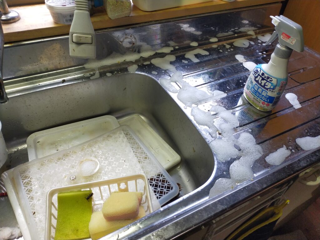 台所や洗面台、トイレ、ふろ場などはハイターなどでぬめりと汚れを取っておきます。