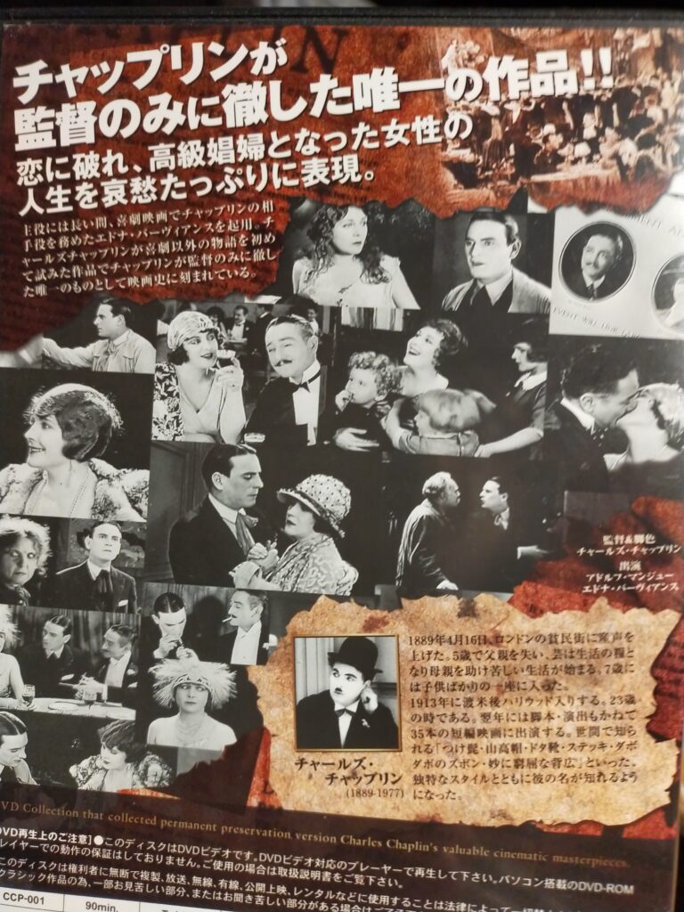 「巴里の女性」 1923年 チャールズ・チャップリン監督 ユナイト
