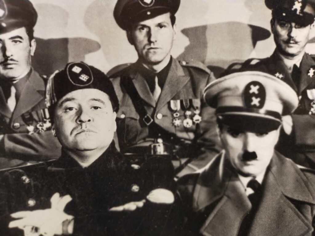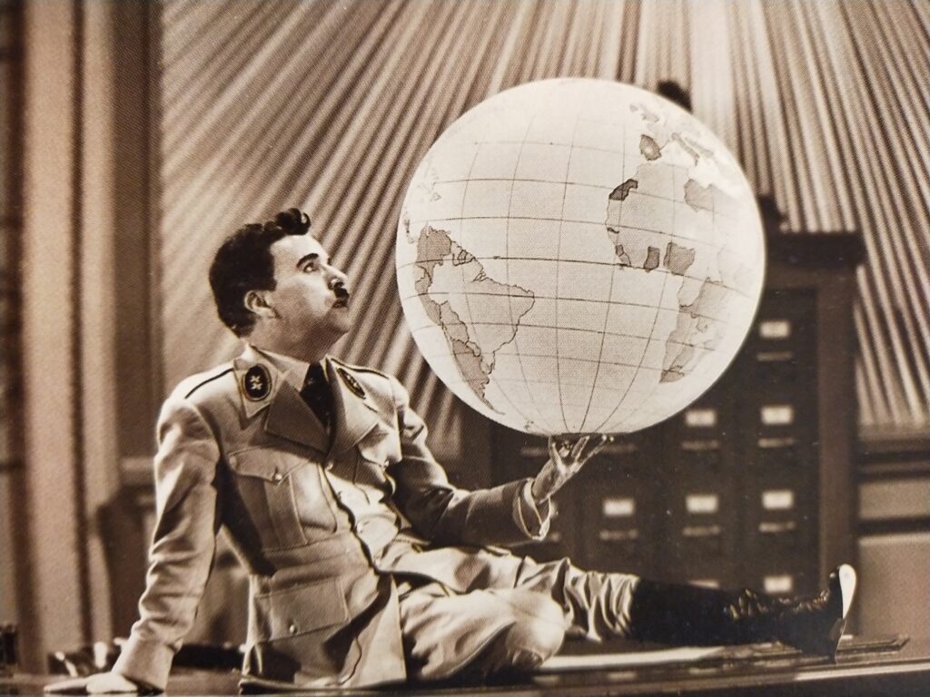 いつもの喜劇よりじっくりした調子のこの作品で、チャップリンはヒトラーをモデルにした独裁者を徹底的にカリカチュアライズする。