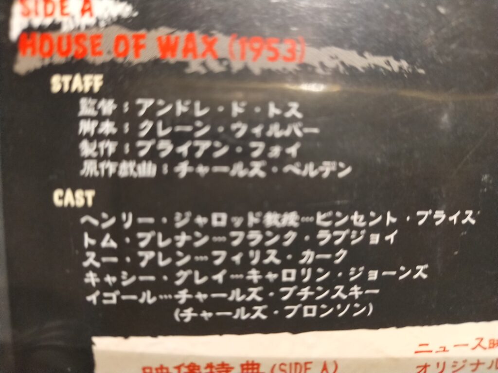 今回見たDVDは、A面が53年版の、B面が33年版の「肉の蝋人形」で、A面には特典映像として、オリジナル予告編とニュース映画が収められている。