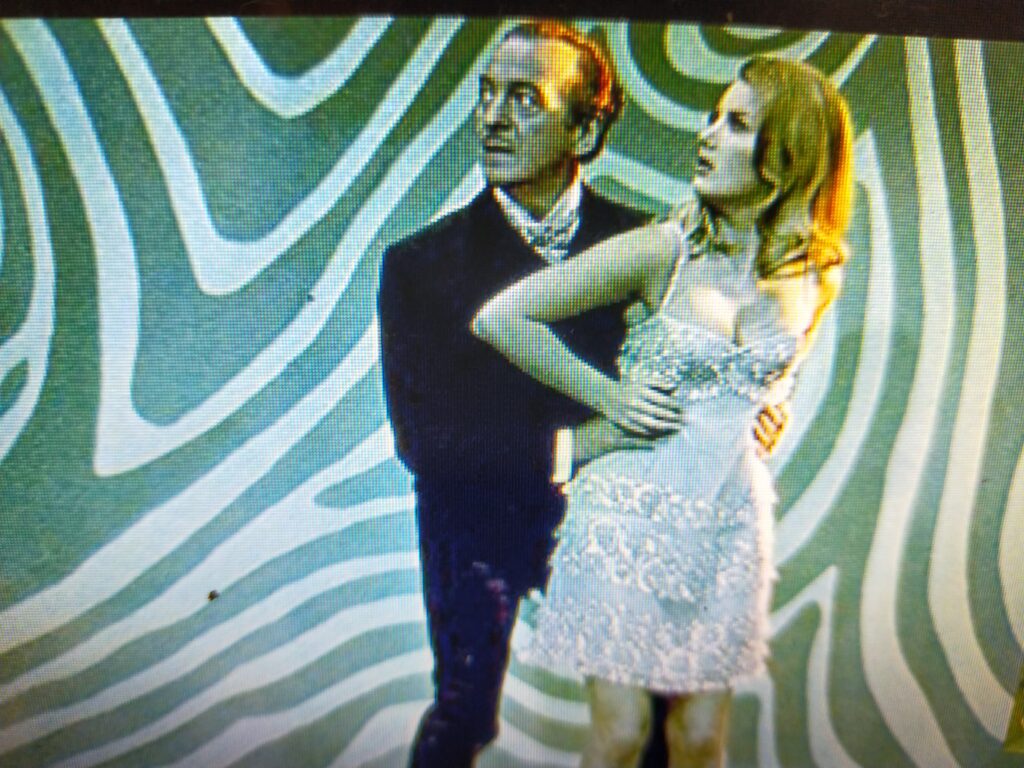 ロンドンからタクシーでやってきた、女スパイのマタ・ボンドが潜入する西ベルリンのキャバレーの建物内部は「カリガリ博士」をカリカチュアした(オマージュではない)アヴァンギャルド風書割セットという徹底ぶり。